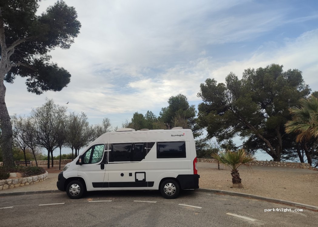 Mooie prima plek. Direct bij strandjes. We gaan per fiets naar het centrum. Nette buurt! Naast 2 nette hotels die nu nog gesloten zijn. Daardoor zijn er ca 9 parkeerplaatsen beschikbaar. Overdag ook gebruikt door bezoekers van het strand. Maar nu op zondag middag niet druk. De menigte gaat voor strand naar Salou.
