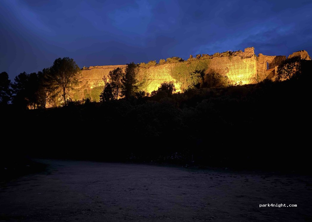 Bueno lugar para pernoctar. Lugar tranquilo y con estupendas vistas al castillo, que mantienen iluminado gran parte de la noche, por lo que no hay oscuridad absoluta en el parking. Sin servicios. Pasó la policía pero no puso ningún problema porque estuviéramos allí.