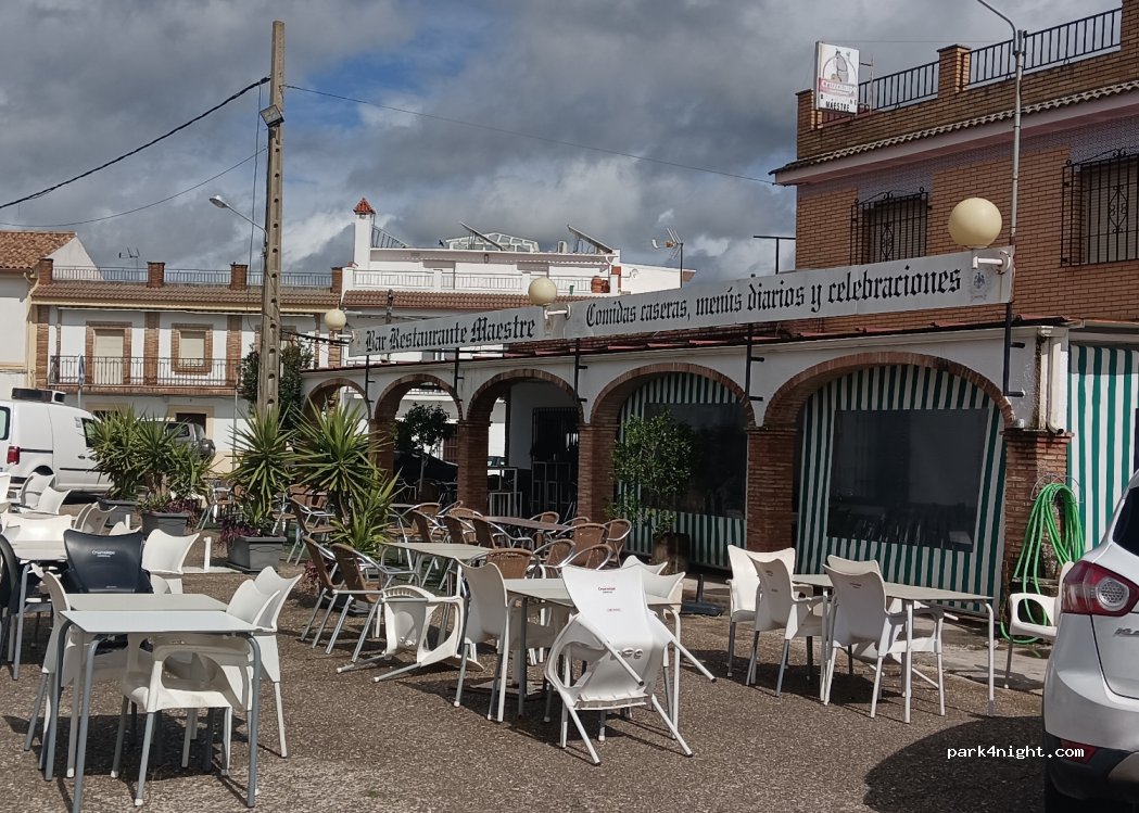 Buen sitio para hacer parada y descansar. Hay 2 restaurantes cerca. Recomiendo el restaurante Maestre, se comer de lujo. El plato rabo de toro esta delicioso. Parque infantil y supermercado a menos de 100metros. También hay gasolinera cerca.