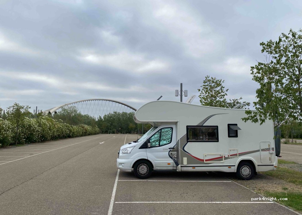 Parfait endroit pour visiter saragosse !! Non loin d'un agility canin donc attention beaucoup de passage de chiens et quelques aboiements durant la journée Nous y sommes restés une semaine car problème de camion, mais l'endroit était parfait A côté d'une balade pour faire avec les chiens, et si vous prenez le long du fleuve vous arrivé directement à Saragosse 50 mn à pied environ, 20mn à vélo
