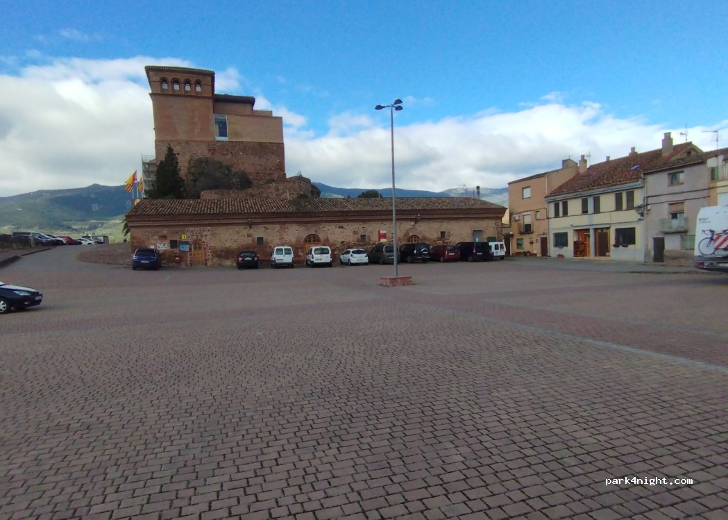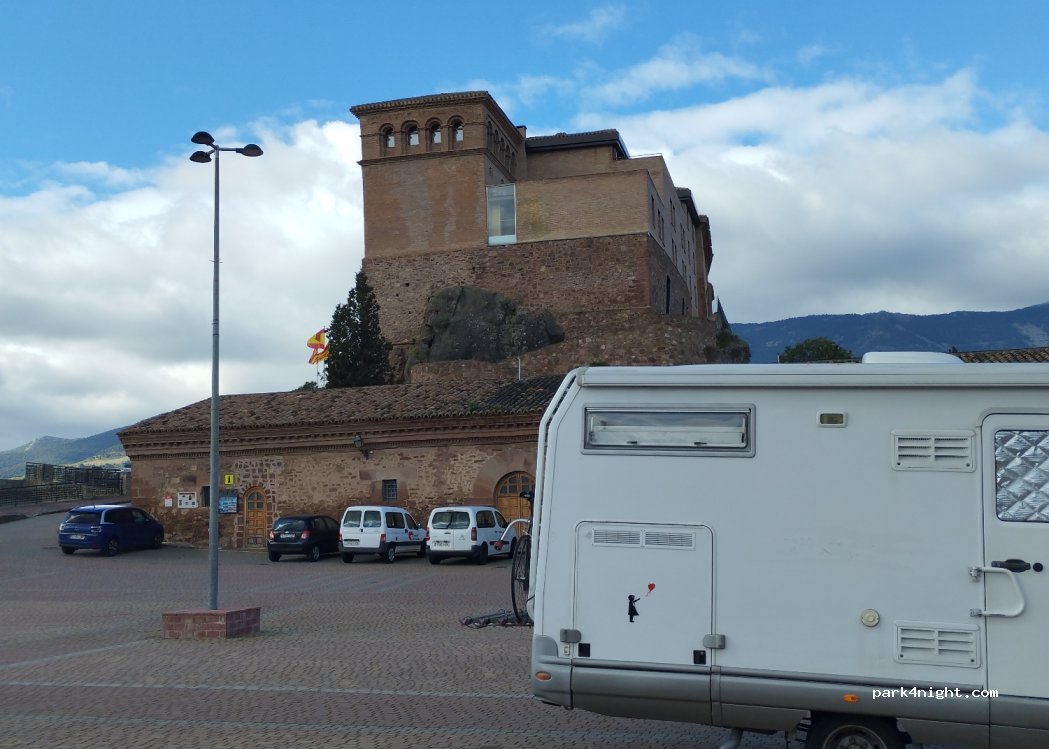 Parking à côté du Palais Papa Luna. Endroit très calme sans circulation la nuit. Il n'y a aucun panneau interdisant le stationnement ou la nuitée. Idéal pour 1 nuit et le lendemain visiter le Palais puis visiter les magasins de chaussures de la ville.
