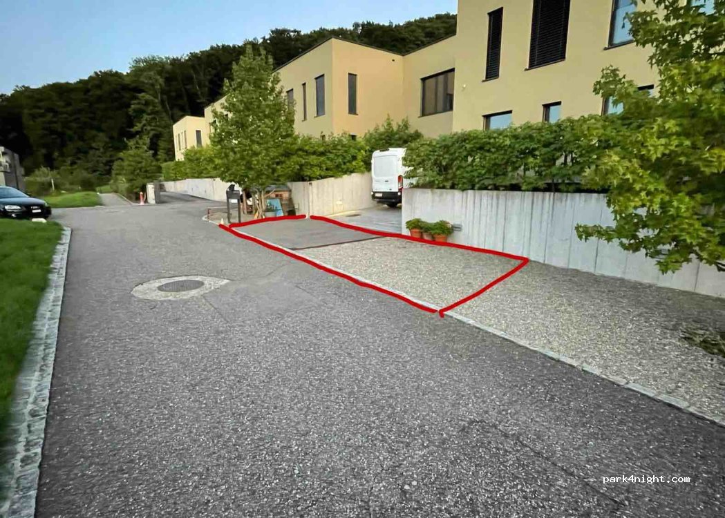 The parking lot is located at the end of Wybäumetstraße 30, 4452 Itingen, near the Linder family - company 2vision and xhund.