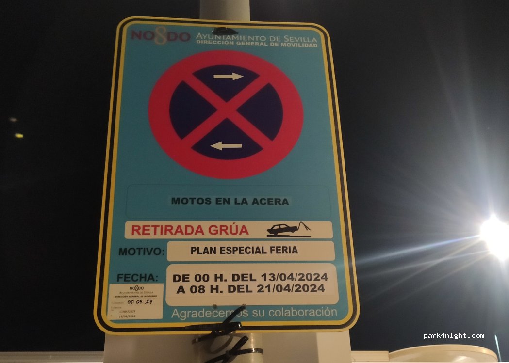 Attention : en raison de la Feria de Séville, le stationnement est interdit ici et dans toute la zone environnante du 13 avril au 21 avril 2024.