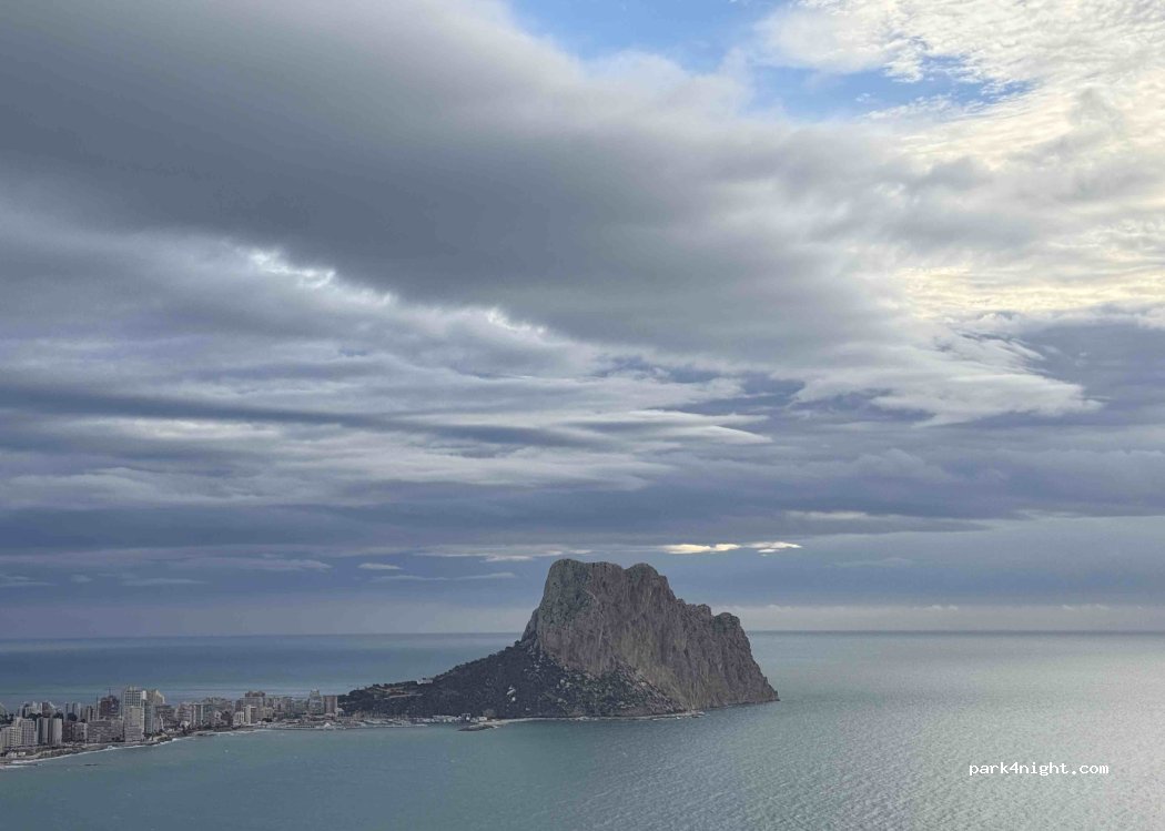 Ruhiges und friedliches Parken in einer Sackgasse. Ein kurzer Spaziergang zum Aussichtspunkt mit Blick auf ganz Calp.
