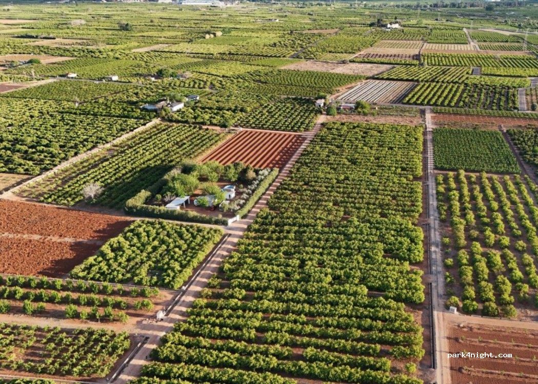 Imagine a tranquil orange grove bathed in the warm Mediterranean sun. The sweet scent of oranges fills the air, while the gentle rustle of leaves swaying in the breeze creates a relaxing atmosphere. Here, among the fruit trees, you will find the ideal place to spend the night in a campervan. A large open space, where you can park comfortably and enjoy the calm and serenity that nature offers.