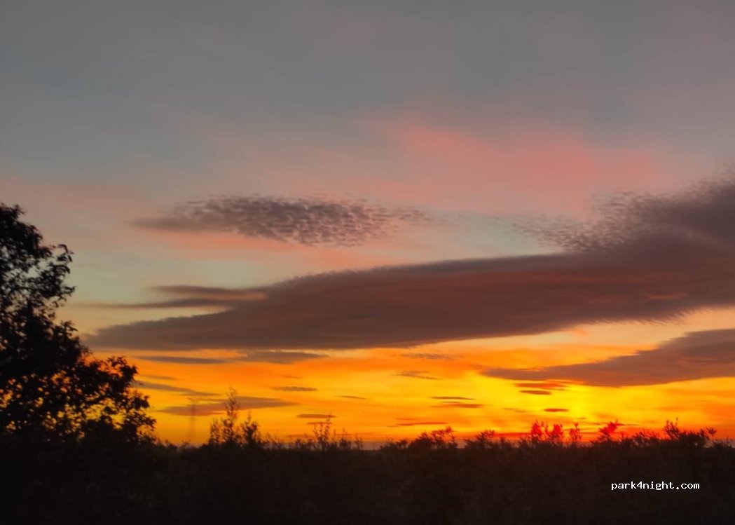 Neben dem Tagesende färbt sich der Himmel warm und golden und bietet ein atemberaubendes Schauspiel. Gleichzeitig erfüllt das Zwitschern der Vögel, die sich in ihre Nester zurückziehen, die Luft und lädt zum Entspannen und Genießen ein. Bei Einbruch der Nacht versinkt das Feld in friedlicher Dunkelheit und bietet die perfekte Kulisse, um die hellen Sterne am Nachthimmel zu beobachten.