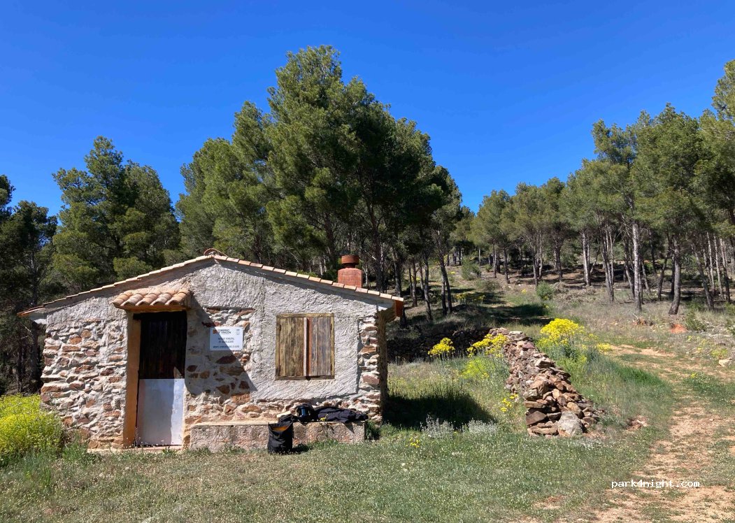 Lagern Sie vor der Waldhütte VALDELÁZARO. Umgeben von Pinien. Es ist teuer zu finden und erfordert Abenteuer, Bodenfreiheit und den Wunsch, sich an einem ruhigen und gemütlichen Ort zu verlieren. Am besten im Frühling und Herbst. Der Zugang erfolgt über die N234, in Richtung eines grünen Weges und dann über Wege zwischen Feldfrüchten. Seite für mutige Entdecker, aber nicht kompliziert.