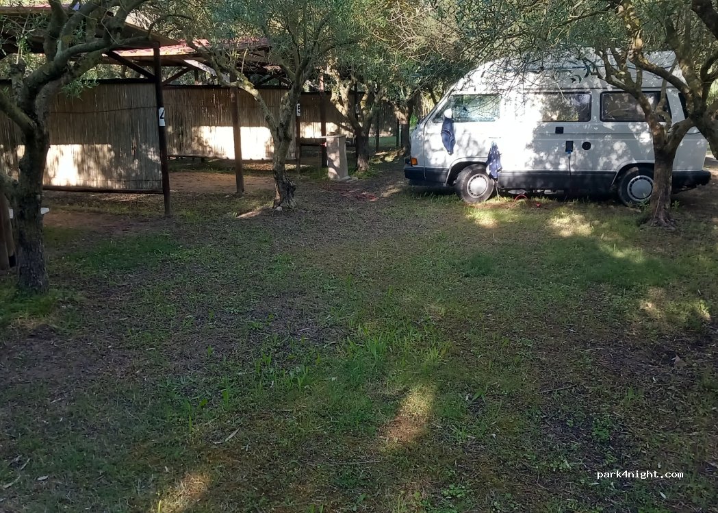 2 Sterne wegen dem schönen Platz unter Olivenbäumen. Die Bäume sind niedrig, daher für alles größer VW Bus eher schwierig. Es war sehr laut aufgrund der nahen vielbefahrenen Straße. Zudem viel Hundegebell aus der Nachbarschaft. Türkisches WC und Dusche vereint in einer Kabine.