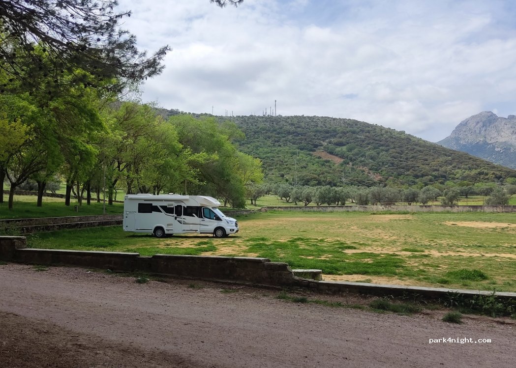 It is a football field in a state of abandonment, it is usually used as a parking lot for town events, as the municipal area is closed for works, I asked a local and he told me that I could stay without problems, it is right behind the area, a quiet place , level, no prohibition signs, water in nearby park