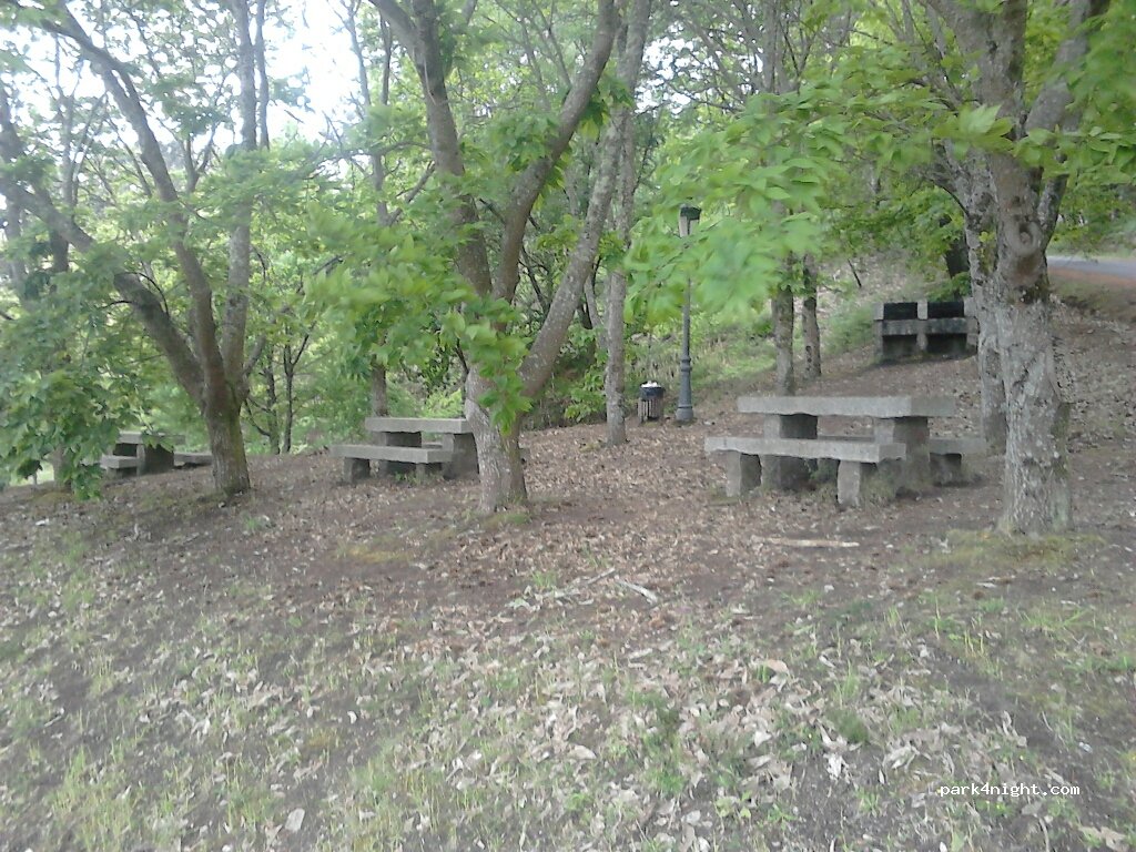 beaucoup de tables de pique nique sous les pins. endroits calme avec un accès à l'eau et poubelles. nous sommes restés que pour manger.