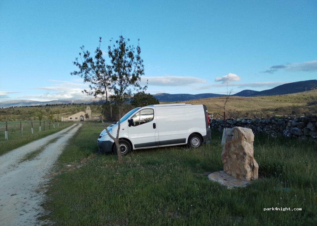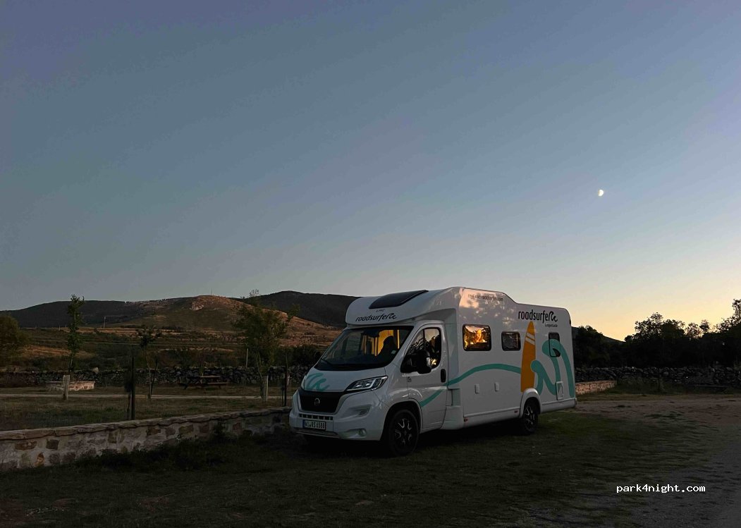 Cerca de un cementerio, muy fácil acceso desde la carretera con muy poco tráfico. Espacio, terreno llano, dos mesas de picnic y un grifo.