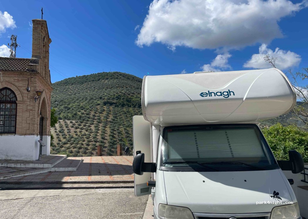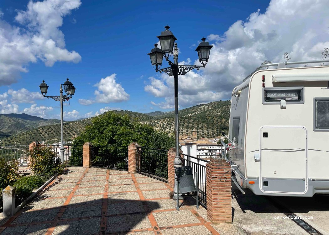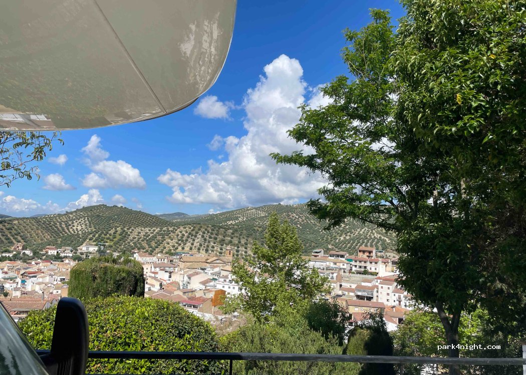 Aparcamiento al lado de una residencia, parque y piscina municipal, tranquilo y unas vistas muy bonitas al pueblo .