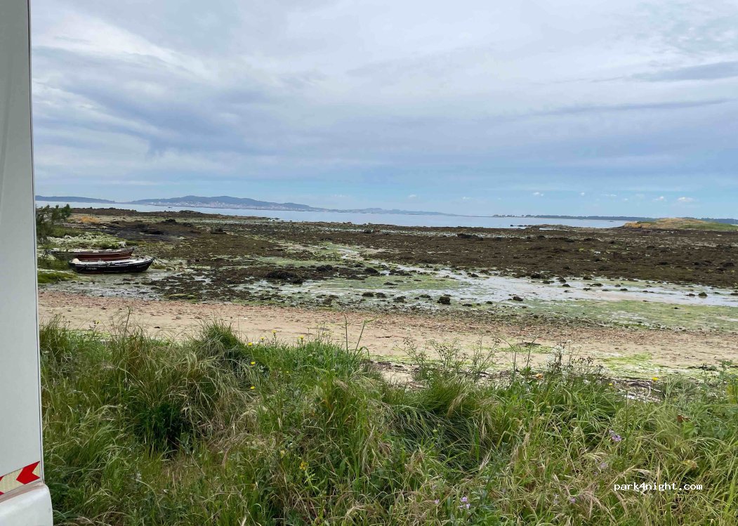 vue sur l'île, la baie, et tutti quanti c'est superbe et en effet, c'est calme et plat le matin nous avons été réveillé aux aurores par les pêcheurs et pêcheuses à pied professionnels qui viennent récupérer les multiples palourdes