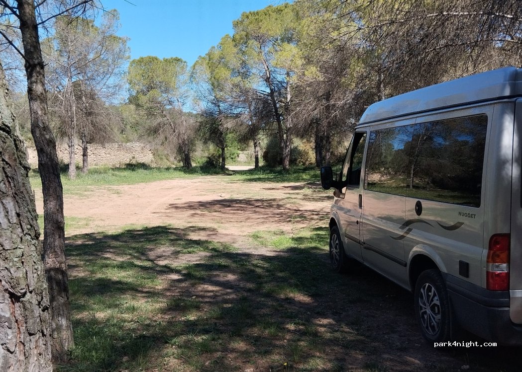 Esplanade with men to spend the day relaxing and/or spend the night. No services. Before entering the town you take a wide track suitable for vans and motorhomes for approximately 500 meters. Next door there is an equestrian center "Sierra Brugés". In the town there are services for shopping for food, a tobacco shop, a pharmacy and some small restaurants.