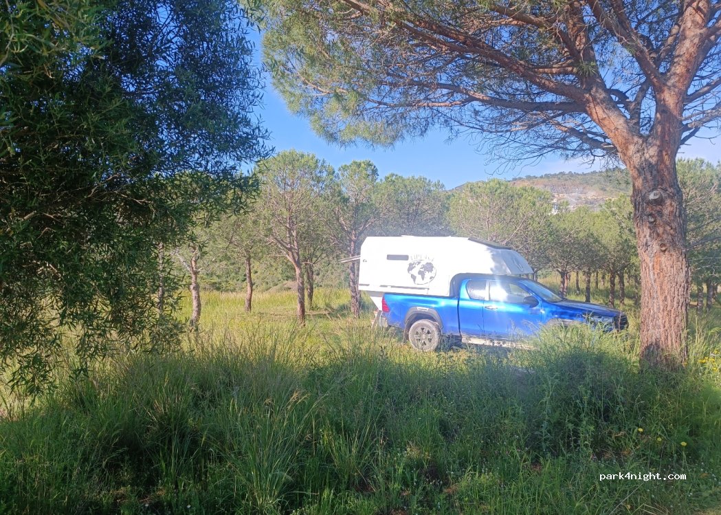 Above the large space of the previous spot, small place between young pines. a little more isolated. still the noise from the factory but with a well-insulated vehicle we didn't hear it all night.