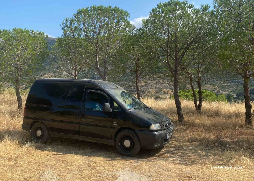 Por encima del gran espacio del paraje anterior, pequeño lugar entre pinos jóvenes. un poco más aislado. Sigue siendo el ruido de la fábrica, pero con un vehículo bien aislado no lo escuchamos en toda la noche.
