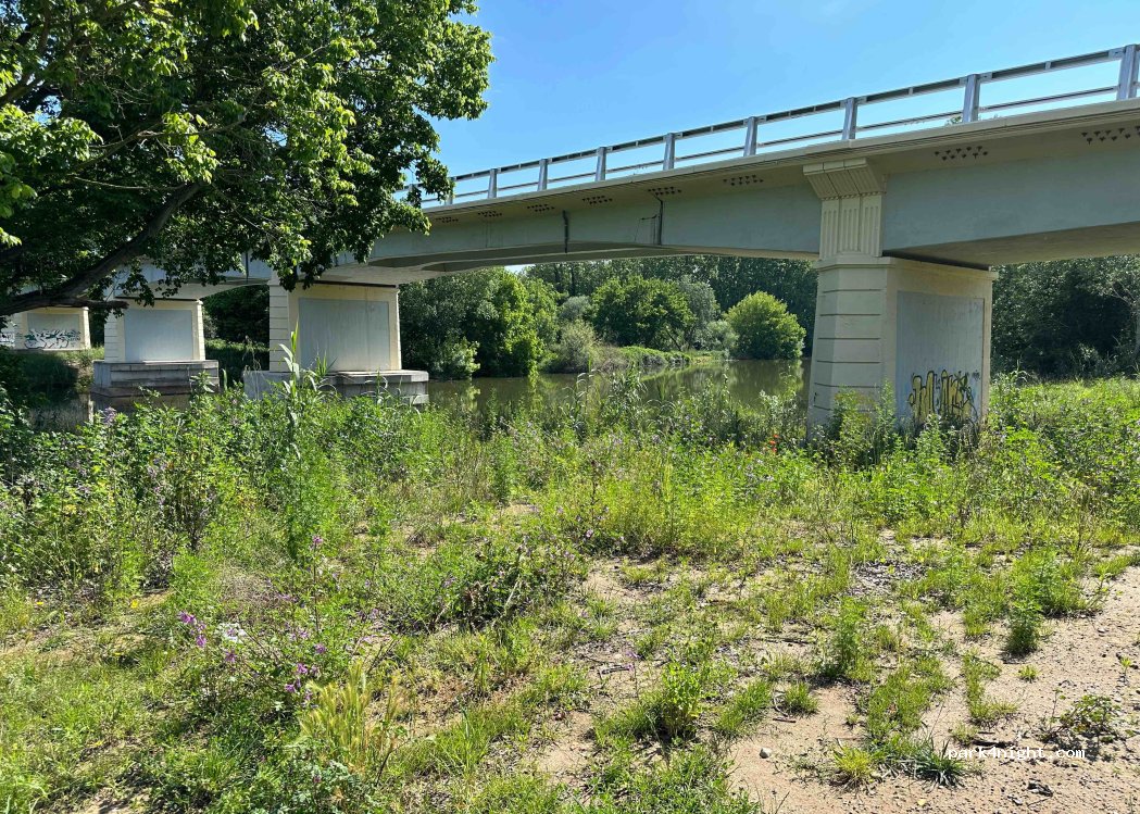 Nettopicknickplatz mit Blick auf den Fluss. Theoretisch groß genug, um auch zu übernachten. Haben wir aber nicht getestet. Keine Verbotsschilder.
