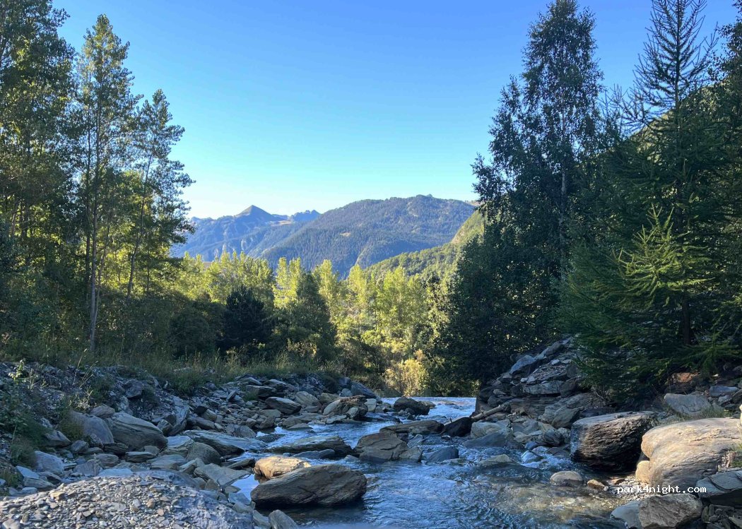 Amplia zona de aparcamiento plana en un hermoso valle. Son 3 km por una carretera de vía única muy estrecha. Más allá de este lugar no se permite aparcar durante la noche, pero aquí sigue siendo muy bonito, junto a un hermoso río.