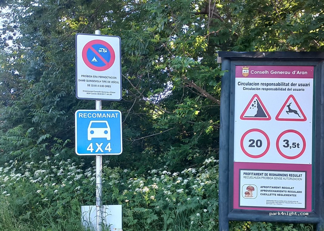 Ya no es posible pernoctar aquí. Indicadores que prohiben pernoctar por riesgo de inundación.