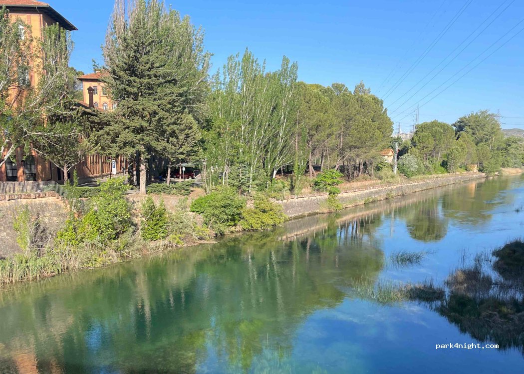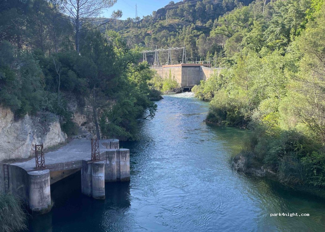 Parking pequeño, muy tranquilo y con poco tráfico por la noche, aparcamos justo al lado de una mesa de piedra para poder hacer un picnic. Estás al lado de la presa. Aunque aquí no hay red...