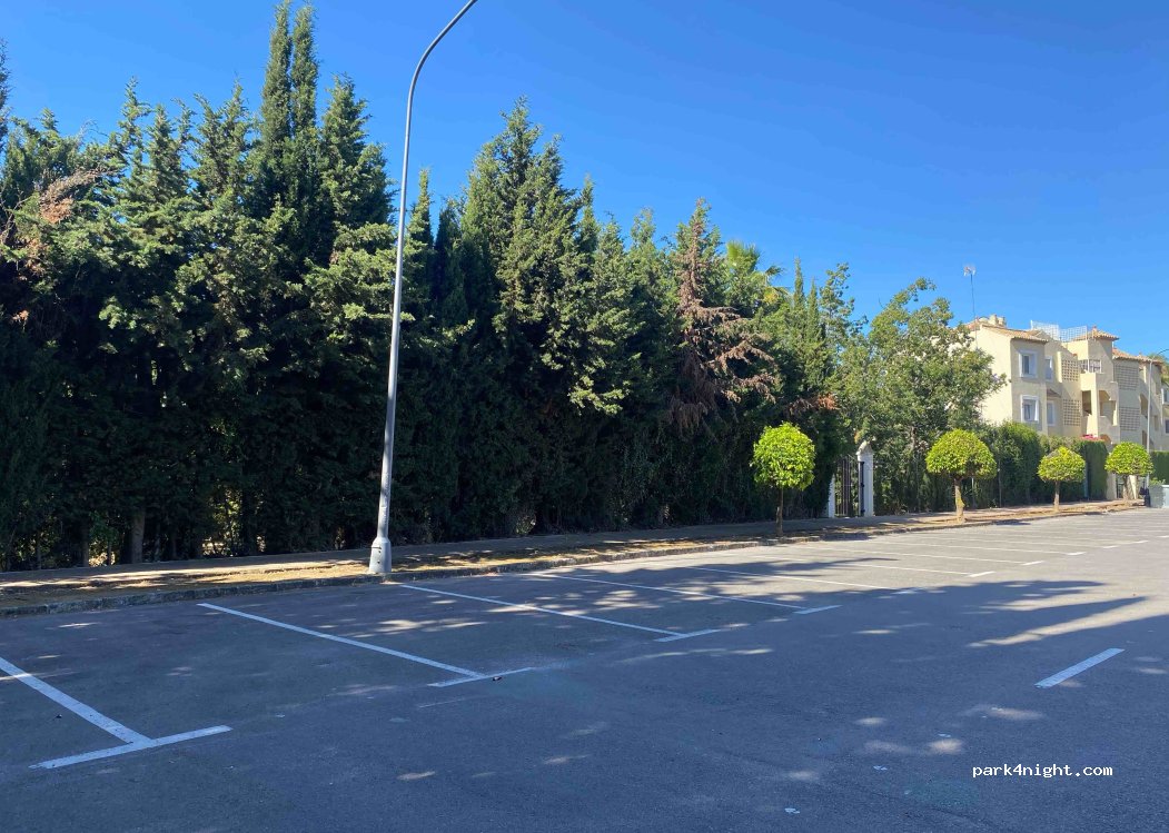 Aparcamiento un poco separado del centro de Marbella. Perfecto para pasar la noche e incluso dejar el vehículo. Zona muy tranquila y segura. Suelo nivelado.