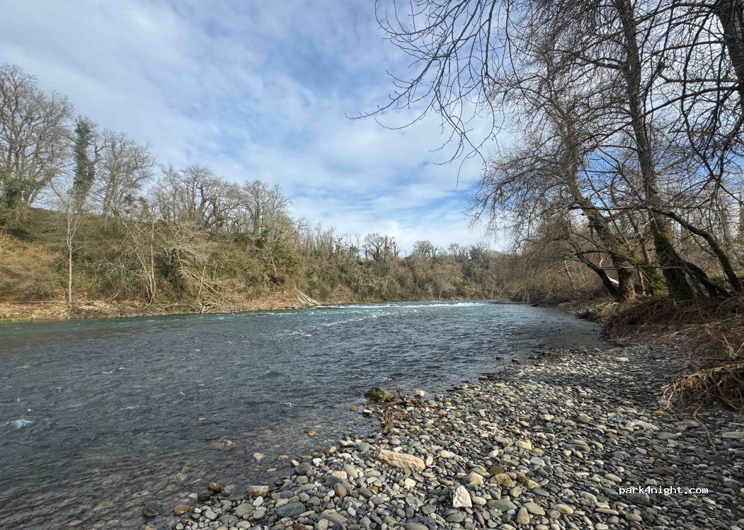 Lieu très tranquille avec accès direct a la Gave avec une petite plage. Idéal pour nuit (fait en février donc en pleine saison je ne sais pas).