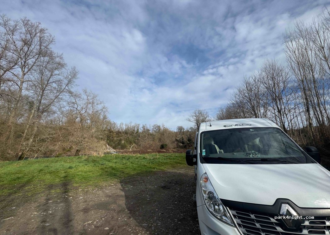 Pour vans et fourgons uniquement, la route d'accès à la rivière etant tres étroite. Humide encore à cette saison. Nuit tres calme, juste bercée par le bruit du gave. Aucun services, remporter ses déchets.