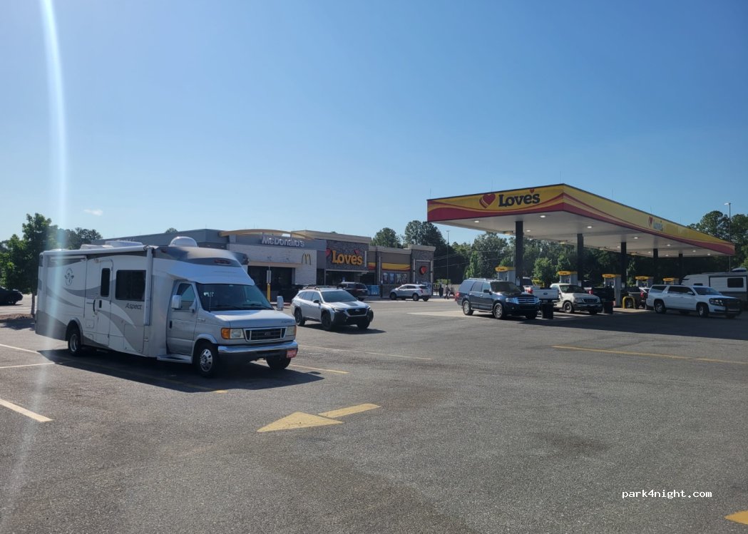 La chaîne de stations-service Love's permet le stationnement des camping-cars et propose des services de vidange moyennant un supplément. Il faut savoir que l'on dort entre les moteurs-générateurs et les bruits divers mais que c'est un endroit sûr.