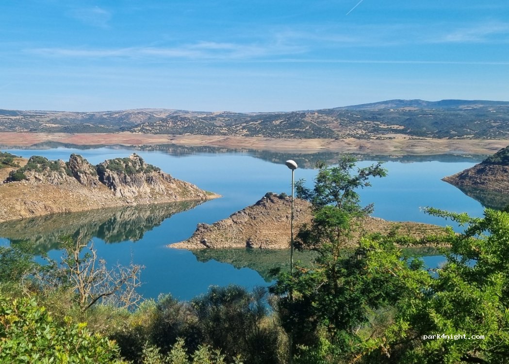 Plek aan het stuwmeer onder de bomen bij een picknickplek. Weg is doodlopend. Erg rustig.