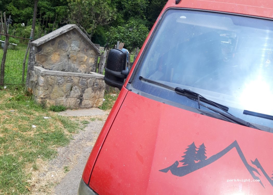 la fonte d'acqua si trova in una stretta curva a gomito.c'è posto per fermarsi ma NON sostare più del tempo strettamente necessario al rifornimento..