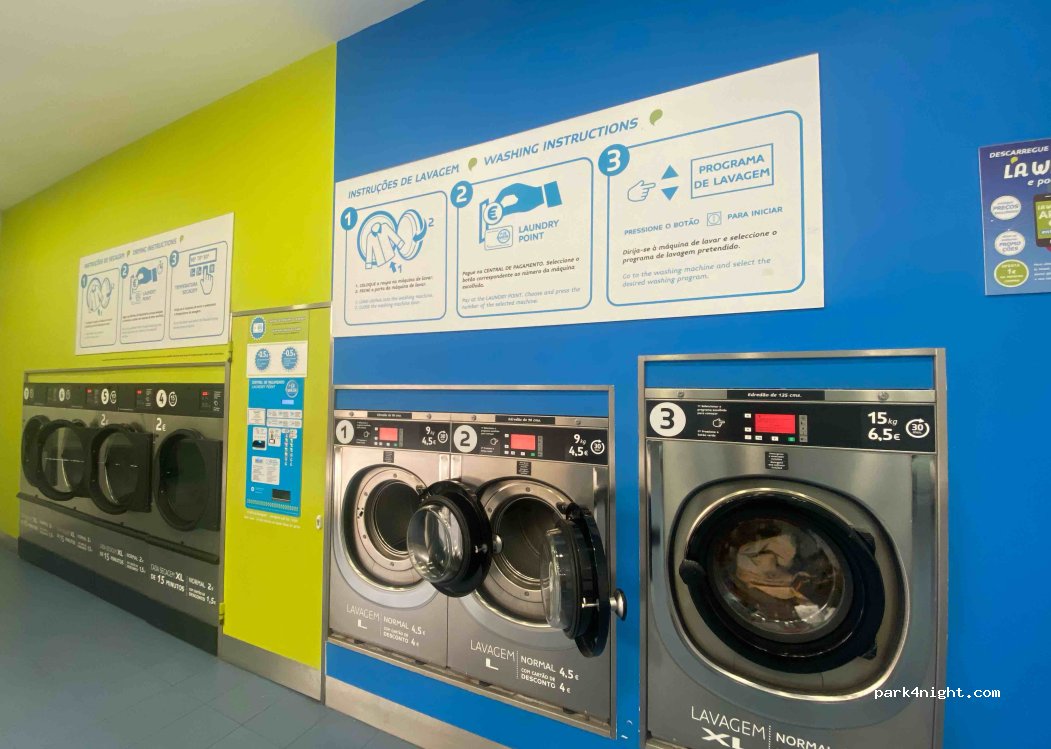 Continente-Parkplatz. Hauptparkplatz auf 2,6 m begrenzt, aber 6 Stellplätze in der Nähe des Eingangs, die für alle Höhen offen sind. Großer Supermarkt, Wäscherei, öffentliche Toiletten, Fitnessstudio, Cafés, Apotheke. Praktisch zur Stadt. 4–10 € für den Bolt-Transport.