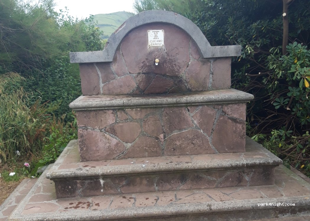 Street parking either side on main road but quiet at night. we slept very well and well lit and safe. drinking water next to the buses, lots of bars and restaurants small supermarket. very nice walks, very close to the beach.