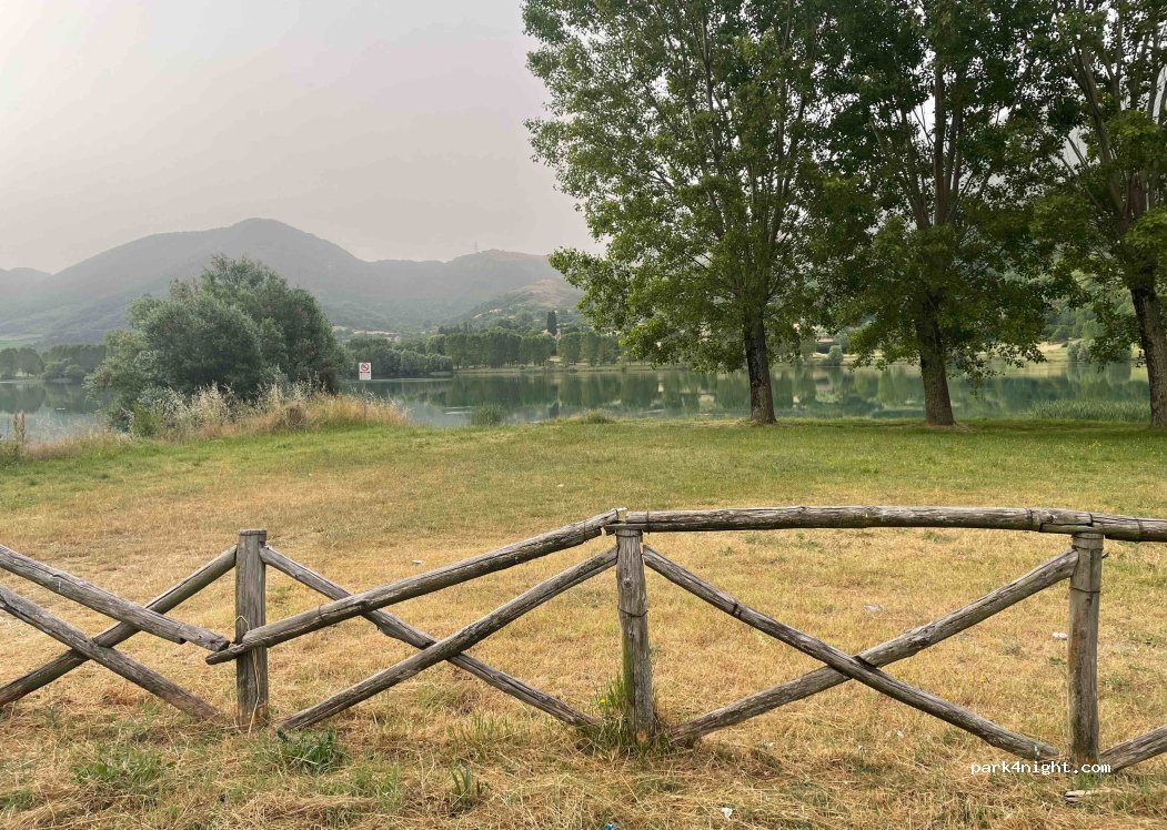 Sehr ruhiger und relativ flacher Parkplatz am Seeufer. Viel Abfall, aber wir konnten eine ruhige Nacht verbringen. Kein Service. Zufahrt über Bergstraße und Dorf, kleine kurvenreiche Straßen