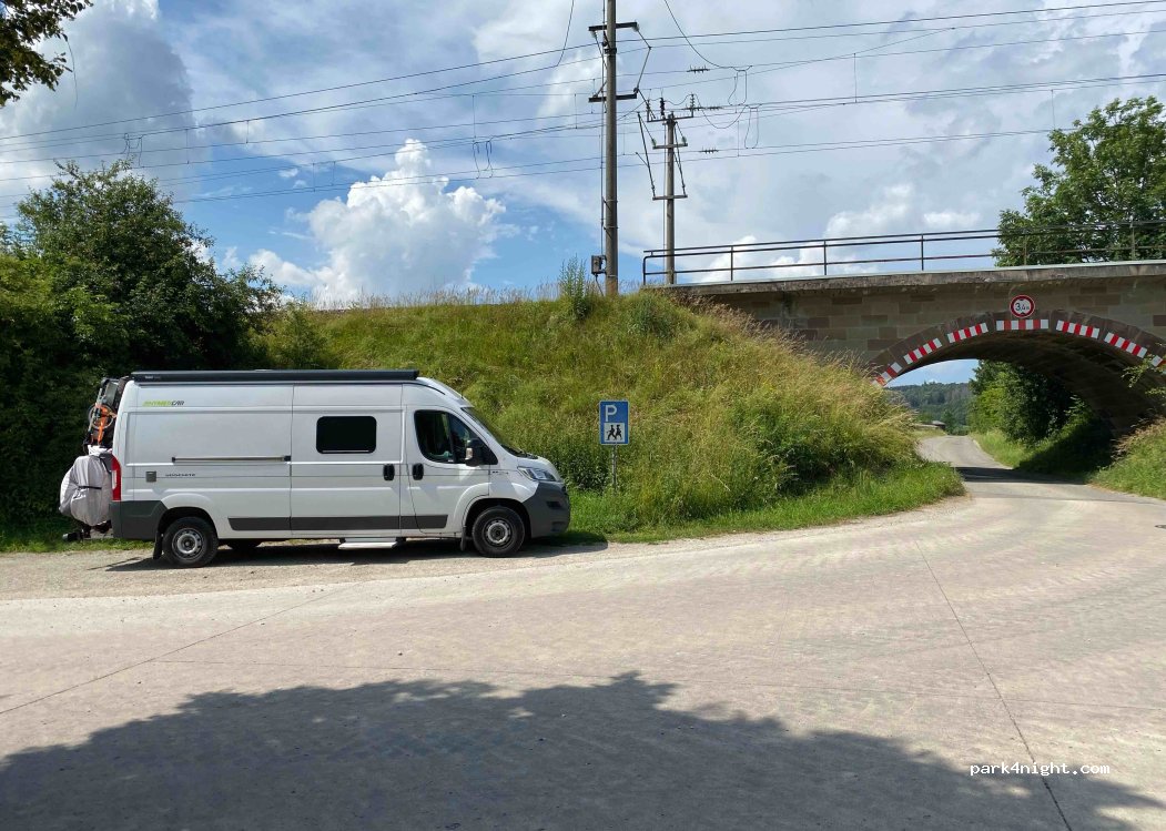Wanderparkplatz, 1 Van, leicht schräg, Platz für einen Van, Landmachinen und Züge sind sehr laut aber zur Not geht eine Nacht