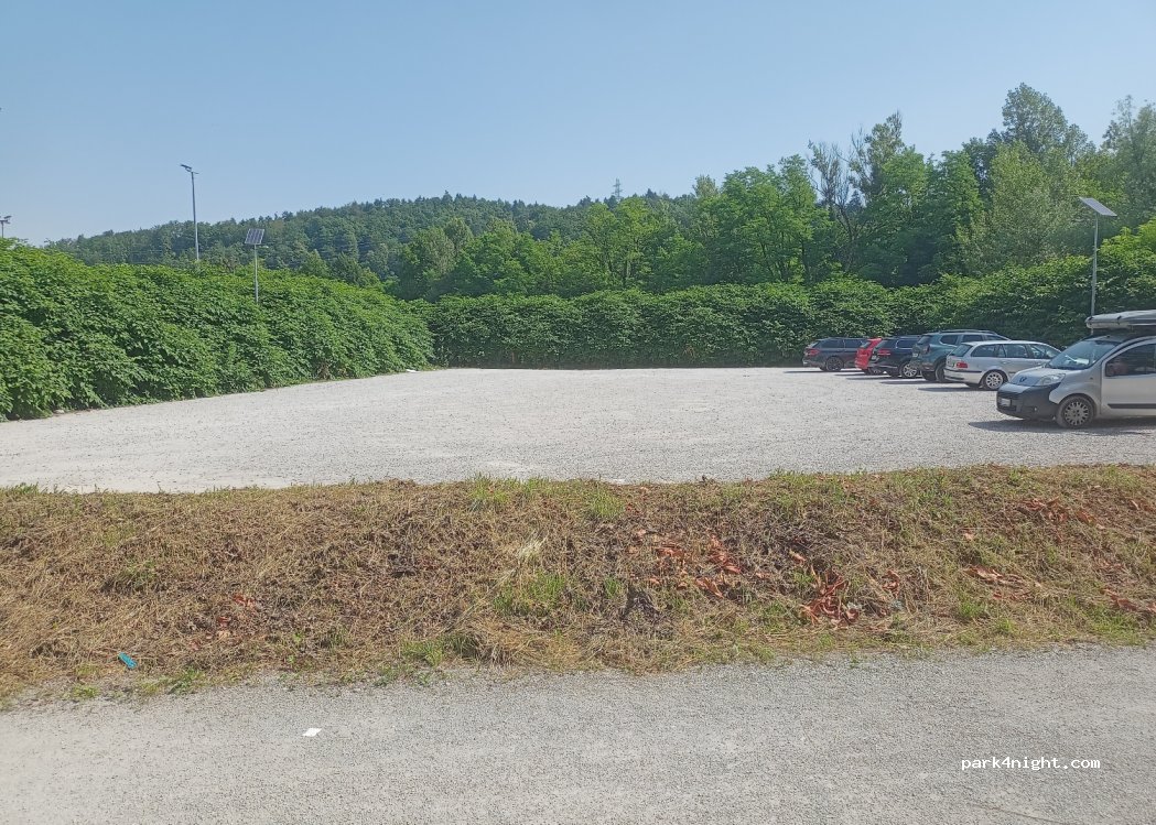 Parcheggio ampio, ma con un po' di movimento di notte, tuttavia nessuno ci ha disturbato. La mattina non c'è ombra, la notte si sta bene. Sicuramente meglio rispetto allo spot sull'altra sponda del fiume.