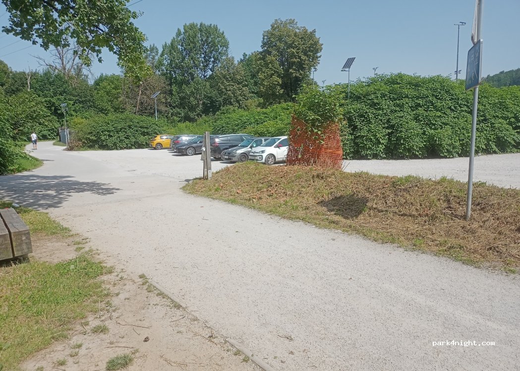 abbiamo trascorso 2 notti senza problemi. ci si può mettere sotto gli alberi a lato della ciclabile, parcheggiati sull'erba. unico inconveniente 4 ore di musica balcanica dal vivo il sabato sera nel circolo del tennis adiacente. ma ringraziamo per questo bel parcheggio. vicina la spiaggetta sul fiume. comodo in bici il centro storico di Lubiana. tutto su ciclabile
