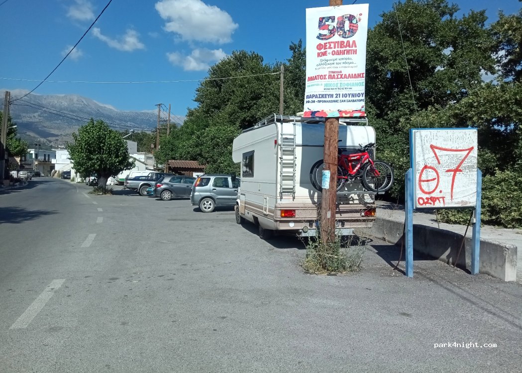 Parking next to the road, 100 meters from the center of the village. Much quieter and cleaner than the large municipal parking lot (no dust).