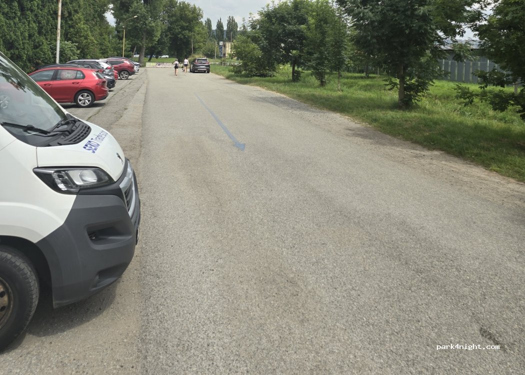 Nice parking next to the tennis club, and we spent one night here with a small van. Very calm at night. The park is animated during the day—bike paths, running trails, dog walkers. No service but there is a bar/restaurant nearby.