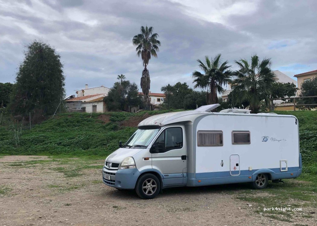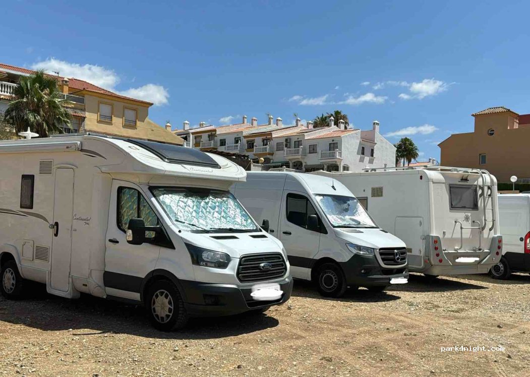 Stellplatz auf Schotter, ruhig und Nähe zum Strand, Mercadonna in ca 500 Meter zu Fuß. Restaurant und Bar zwei Minuten. Haben hier eine Nacht sehr ruhig gestanden. Wollten nach Malaga, dort keine Chance einen Platz zu bekommen. Man kann mit dem Bus nach Malaga fahren. Bitte verlasst den Platz sauber, nehmt den Müll mit, die Anwohner bedanken sich.