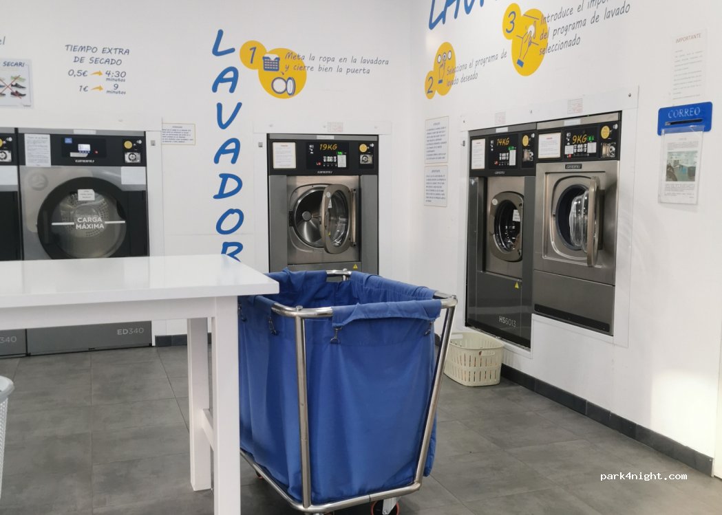 Lavandería con 3 lavadoras de 9kg, 12kg y 19kg. También hay una estación de lavado para perros adjunta donde también hay una lavadora para mantas para perros, etc.