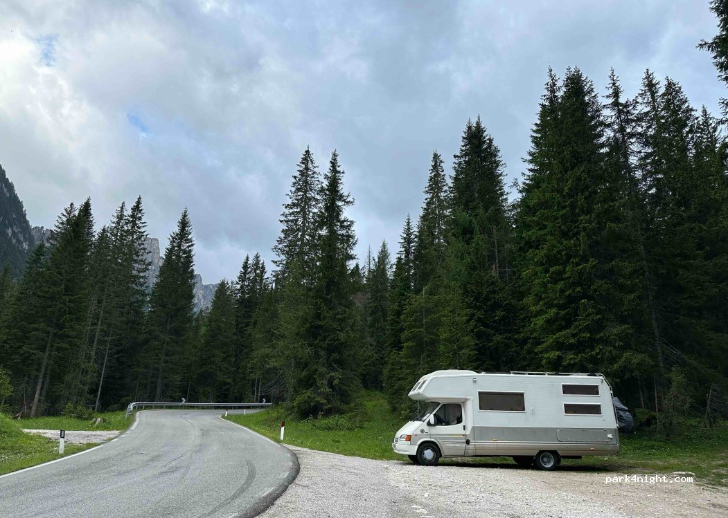 Place next to the road, with space for 3 motorhomes/camper. We spent the night without problems, very quiet. In front there is a path to go fishing.
