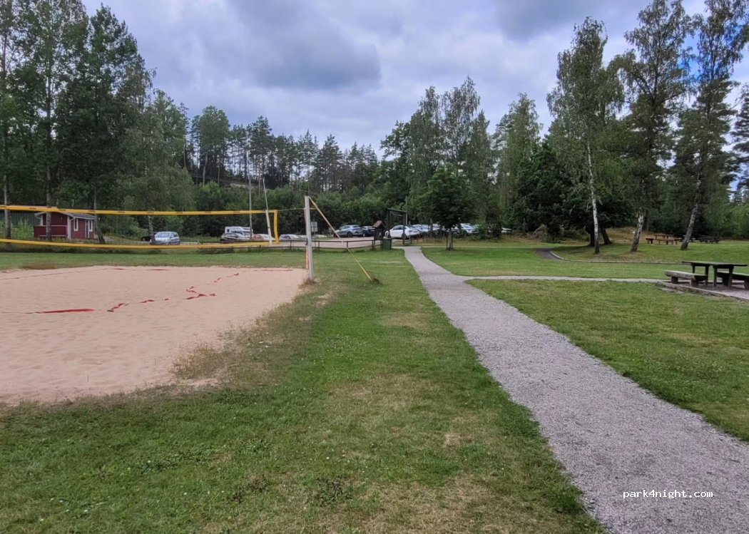 Bönergården is open during the summer time. Parking for daytime visitors is free, but there is a fee for staying overnight. Located at lake Bönnern , with event hall and café (maybe very busy when open?), playground, football field, volleyball court, picnic benches, barbecue area and beach.