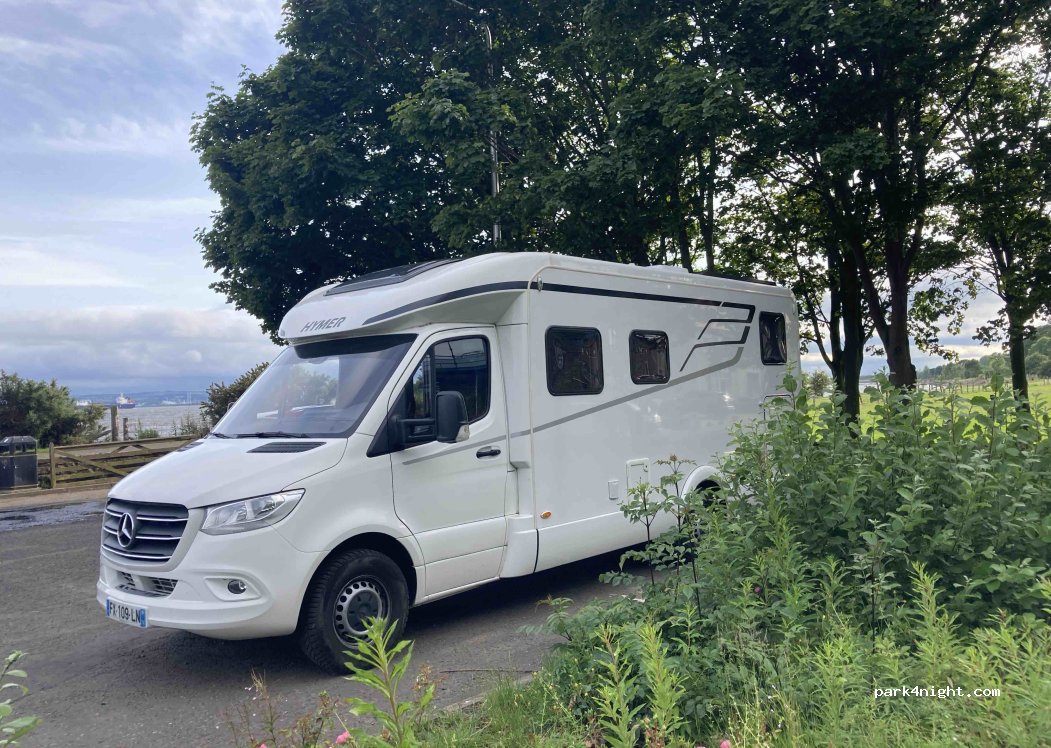 We parked up here yesterday and spent the night. Parking Space is fine for our 5.4m Layla. A beautiful sunset over the Firth of the Forth, quiet spot for a restful night. Highly recommend a meal at the villages Red Lion Inn, delicious food. Best book a table as it is small and rather busy! it's also dog friendly. This morning we took a donder around the village and up to Culross Abbey. 5*
