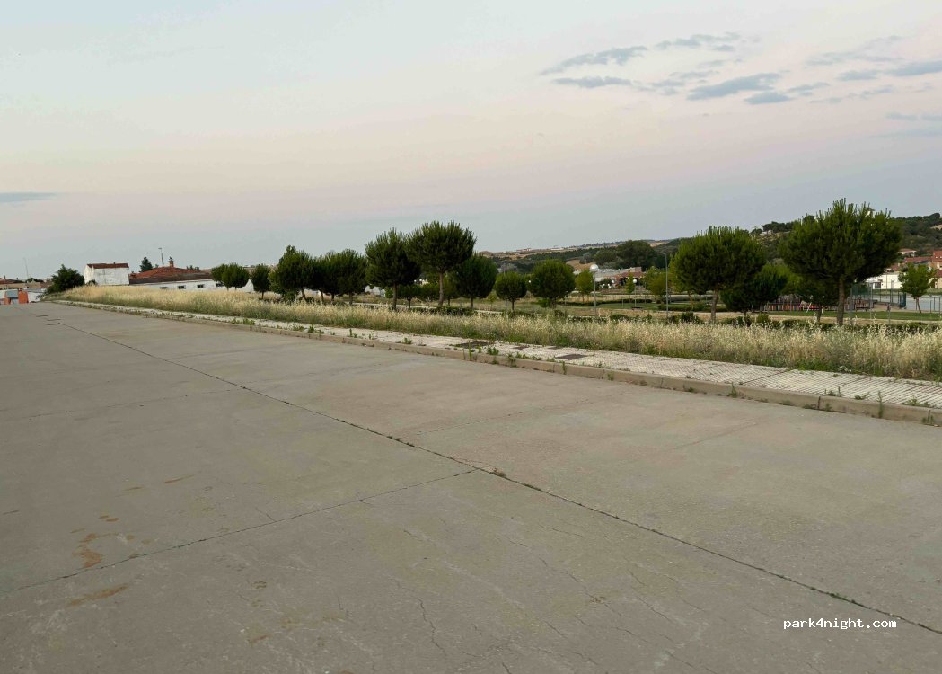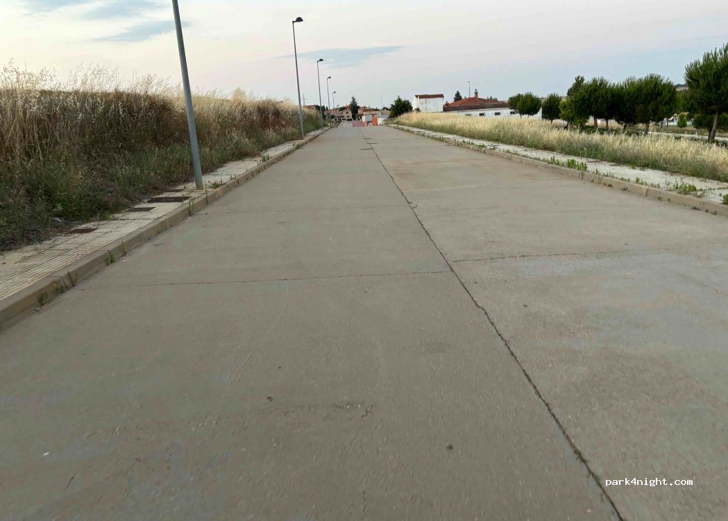 Hemos parado a comer y descansar. Es una urbanización nueva muy tranquila, sin apenas ruido y con varios parques en los alrededores con césped a la sombra. No hay muchos arboles que puedan dar sombra a la autocaravana.
