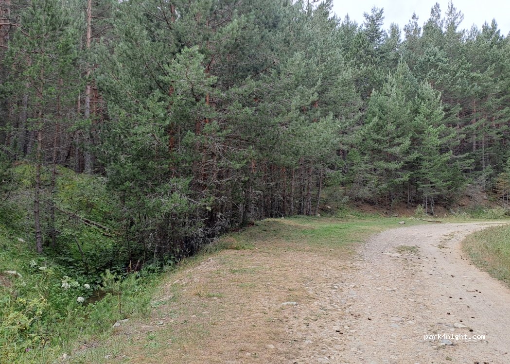 Aparcamiento al borde del camino forestal en medio del bosque. Plaza para furgoneta camper o camión. Pudimos dar la vuelta para instalarnos con un cc de unos 7/8m. Noche tranquila. Salida para caminar por la mañana. Sin servicios. 4/5G recibido.