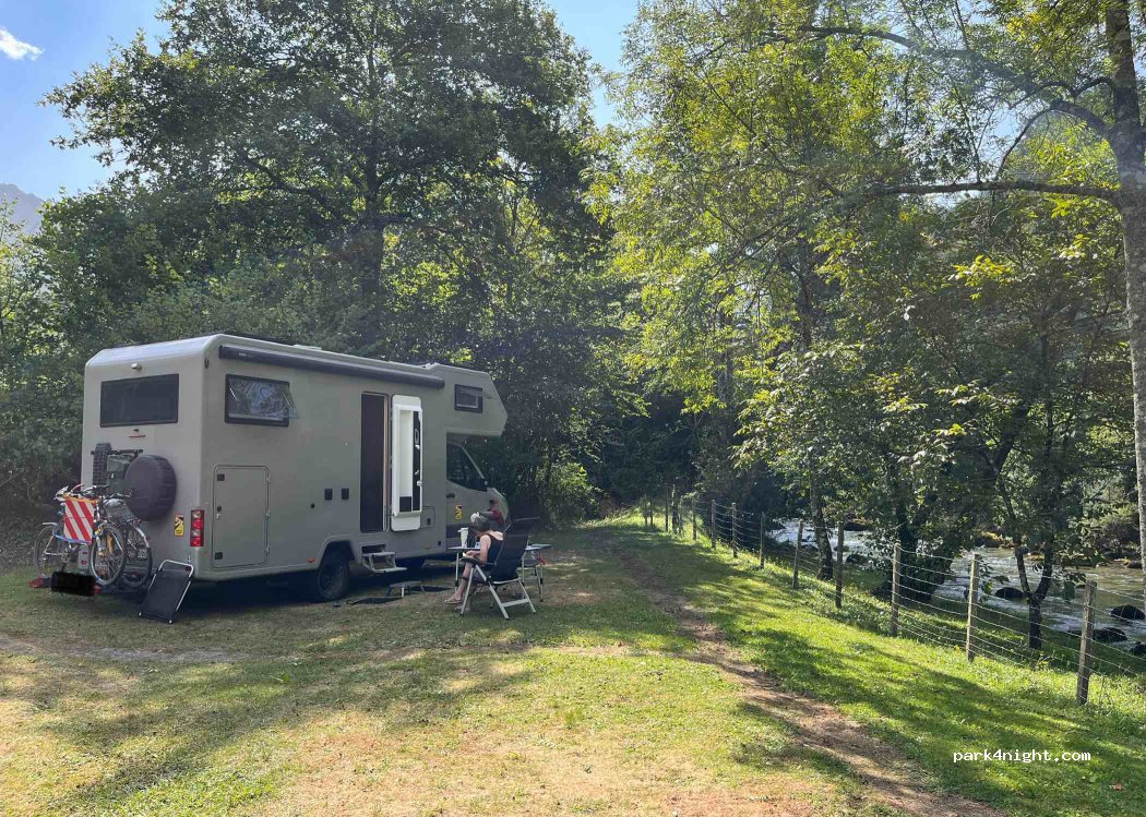 An absolute gem in the mountains. If you're looking for peace and quiet, hiking, and mountain biking, this is the place for you. On one side of the Gave River, there's direct access. A small stream gurgles across the site (great for kids). A very natural site. The pitches are nice and spacious.