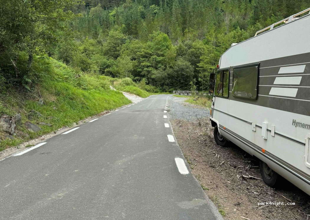 Lugar ideal para una parada corta, nosotros hemos parado para comer, pero a lo mejor sirve también para pernoctar. Hay sitio como para 2 o 3 autocaravanas, uno de ellas bástate plana el resto con unos grados de inclinación.