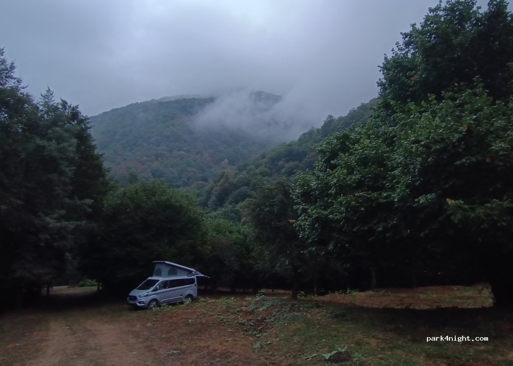 Dormimos cerca del refugio. El lugar es espectacular, aunque no hay casi nada a nivel. Recomendable solo para furgonetas no muy grandes. Único servicio: contenedores de basura y el agua de los arroyos que lo circundan. Punto ideal para conocer el hayedo de Tobia en una agradable excursión.