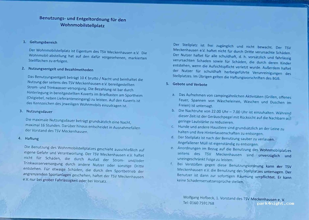 Ein schöner ruhiger Platz mit Wasser und Strom. Bezahlung nur in 10€ bar und nur eine Übernachtung möglich! Perfekt für die Durchreise. Die Bezahlung erfolgt nach wie vor mittels bereitgestellter Umschläge am Vereinsheim, beschriftet mit dem eigenen Nummernschild. Würden dort wieder übernachten.