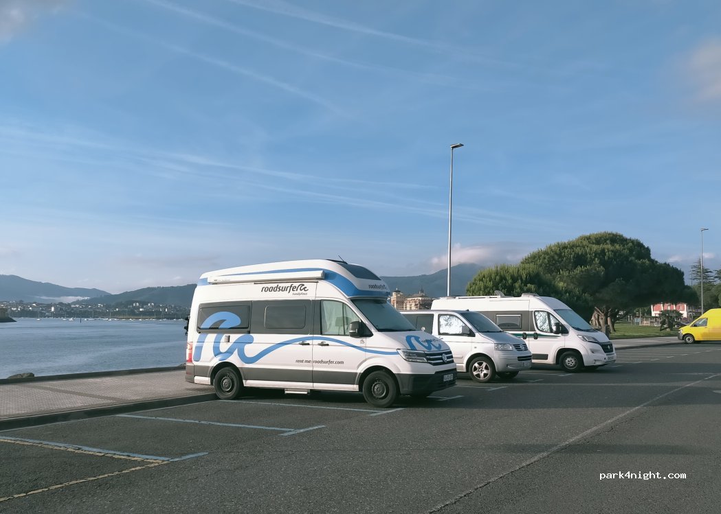 Aparcamiento perfecto para ir con furgoneta y pasar la noche sin problema. Fuera de los meses de junio, julio y agosto es gratuito. El entorno es bonito frente al mar y dispone de unos baños públicos que abren durante el día, además está a un paso del centro de Hondarribi.